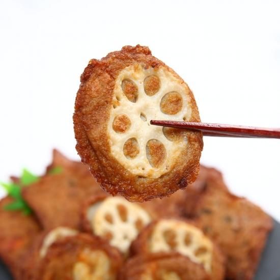 魚肉(スケソウダラ、シイラ、アジ)、澱粉(馬鈴薯、小麦)、砂糖、酒、食塩、発酵調味料、菜種油、調味料(アミノ酸等)、シリコーン、ごぼう、にんじん、さつま芋、にら、レンコン、えび