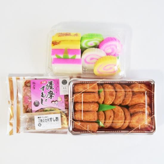 さつま揚げ4種セット400g×1、かまぼこパック400g×1、薩摩すもじの素(すし酢付き)200g×1