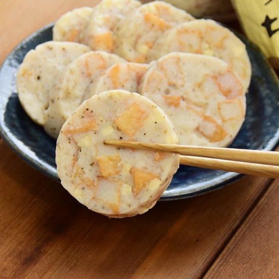 【魚っちチーズ入り】魚肉、チーズ、ブラックペッパー、にんにく、食塩、食用菜種油/加工澱粉、調味料(アミノ酸等)、保存料(ソルビン酸)