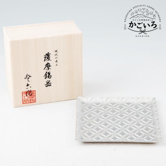 薩摩錫器 切子大皿角型(七宝)<薩摩錫器工芸館>