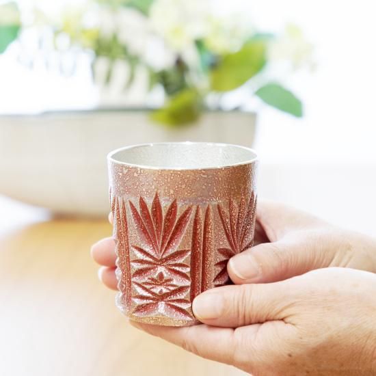 薩摩錫の繊細な文様が美しい、職人の伝統的な手法と現代的な感覚から生まれたモダンな吹雪加工のオンザロックです。