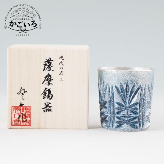 薩摩錫器 切子オンザロック(藍)<薩摩錫器工芸館>