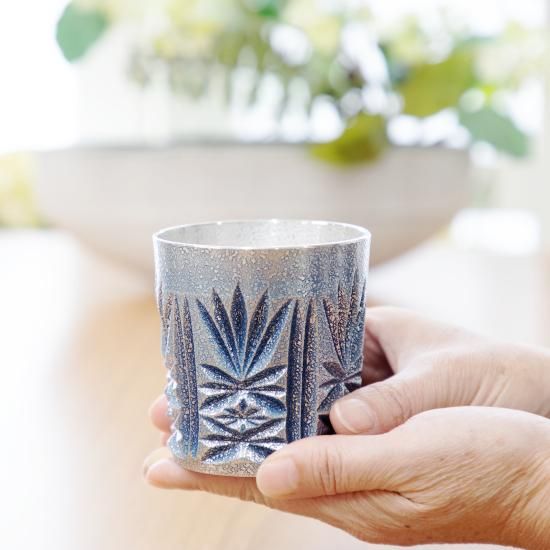 薩摩錫の繊細な文様が美しい、職人の伝統的な手法と現代的な感覚から生まれたモダンな吹雪加工のオンザロックです。