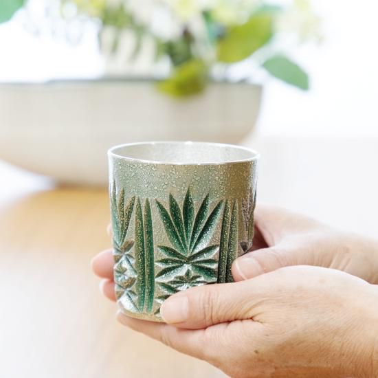 薩摩錫器 切子オンザロック(緑)<薩摩錫器工芸館>