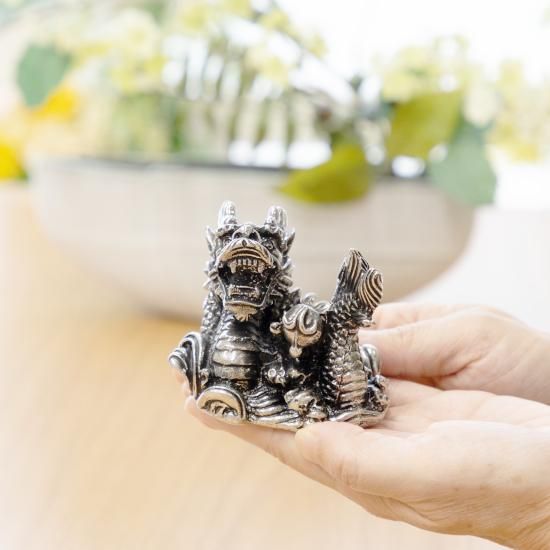 霧島は全国でも知られる天孫降臨の地。錫製の置物、干支「辰」です。龍(辰)は、富と繁栄の象徴といわれ、十二支の中で唯一、架空の生き物ですが、中国で幸運を呼ぶとされている四種の霊獣の中で最も力があるとされています。