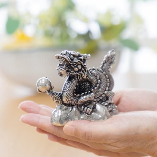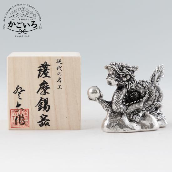 霧島は全国でも知られる天孫降臨の地。錫製の置物、干支「辰」です。龍(辰)は、富と繁栄の象徴といわれ、十二支の中で唯一、架空の生き物ですが、中国で幸運を呼ぶとされている四種の霊獣の中で最も力があるとされています。