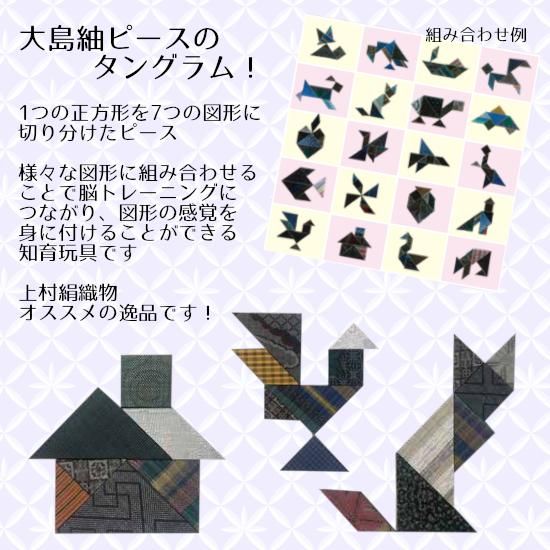 オンリーワンのタングラムセット「大島紬ピース」カタチを組み合わせてクリエイティブに楽しむ知的パズルとして、知恵比べゲームとして、リビングや玄関を彩るインテリアとして、お子様はじめファミリー層やシニア層、和装ファン、ARTコレクター、海外の日本伝統文化ファンと、あらゆる国と世代の皆様へ。桐箱に詰め込んだ、7つのPieceたちが、世界のPeace(平和)へ繋がる夢を持って、より多くの皆様へ、世界へ、後世へ繋げたいと思っております。