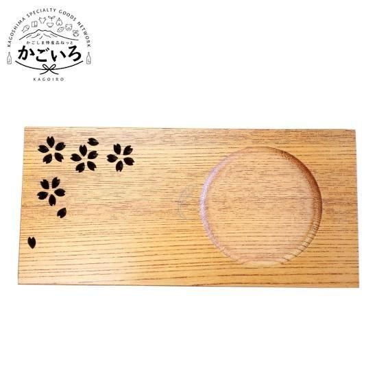 職人が1つ1つ手作業で木を削り、拭き漆仕上げ法で天然漆を塗った作品。銘木を使っております。コップとお茶菓子を置けるように、横長に作ってあります。日本をイメージさせる桜の模様が彫ってあります。天然漆の作り出す上品な木目をお楽しみください。