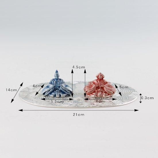 かわいいお子様の幸福を願うのにぴったりな、錫製の置物「雛人形」です。男雛・女雛の二人だけお飾りする親王飾りで、家具やテーブルの上などに省スペースで飾ることができます。細部にこだわって、職人が丁寧に手作業で仕上げました。お祝いの贈り物にもおすすめの逸品です。錫は「割れない・錆びない」ことから縁起の良い金属と言われています。大切な方へ、長くご愛用できる錫の雛人形を贈りませんか?