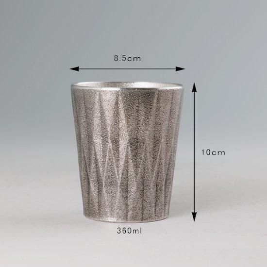 薩摩錫器は、古来「割れない」「錆びない」という特徴があり、縁起物として薩摩の人々に愛されてきました。本商品は、周りを規則的に彫り込む形となっており、ずっしりとした重厚感を楽しんでいただける商品となっております。容量は、360mlとなっております。味をまろやかにする薩摩錫器で至福のひと時を過ごされてみてはいかがですか。